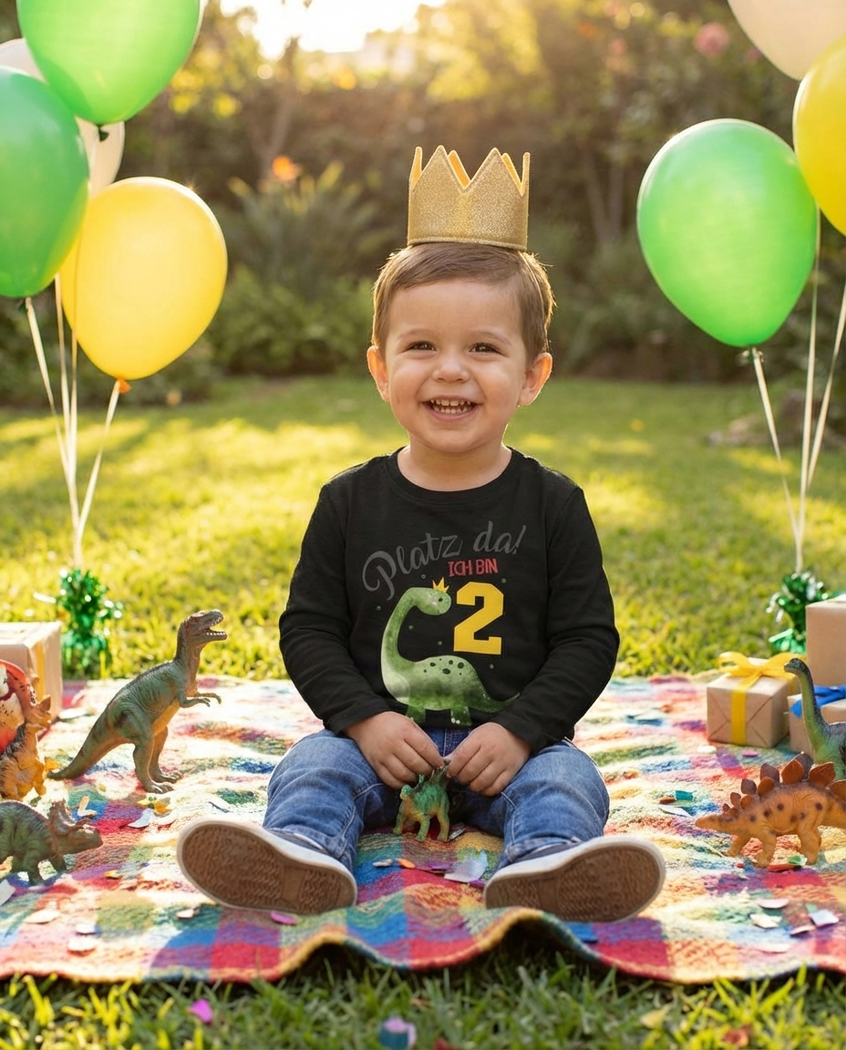 Lass deinen kleinen Dinosaurier-König seinen großen Tag in vollen Zügen genießen! 🦕👑