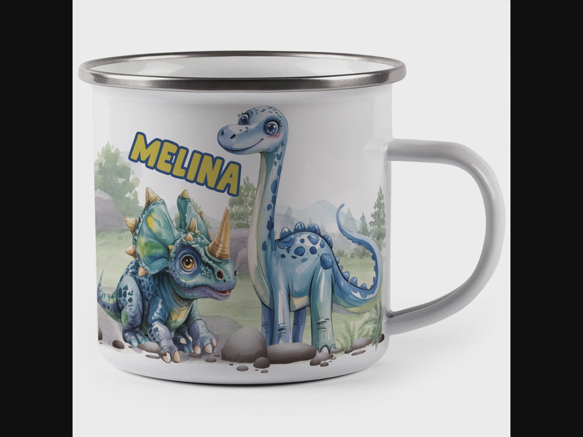 Die personalisierte Emaille Tasse mit Dino Freunde Duo-Motiv von MIKALINO ist das perfekte Geschenk für kleine Dinosaurier-Fans, die farbenfrohe Motive und freundliche Urzeit-Giganten mögen. Jede Tasse wird mit deinem Wunschnamen bedruckt und so zu einem ganz persönlichen Unikat.