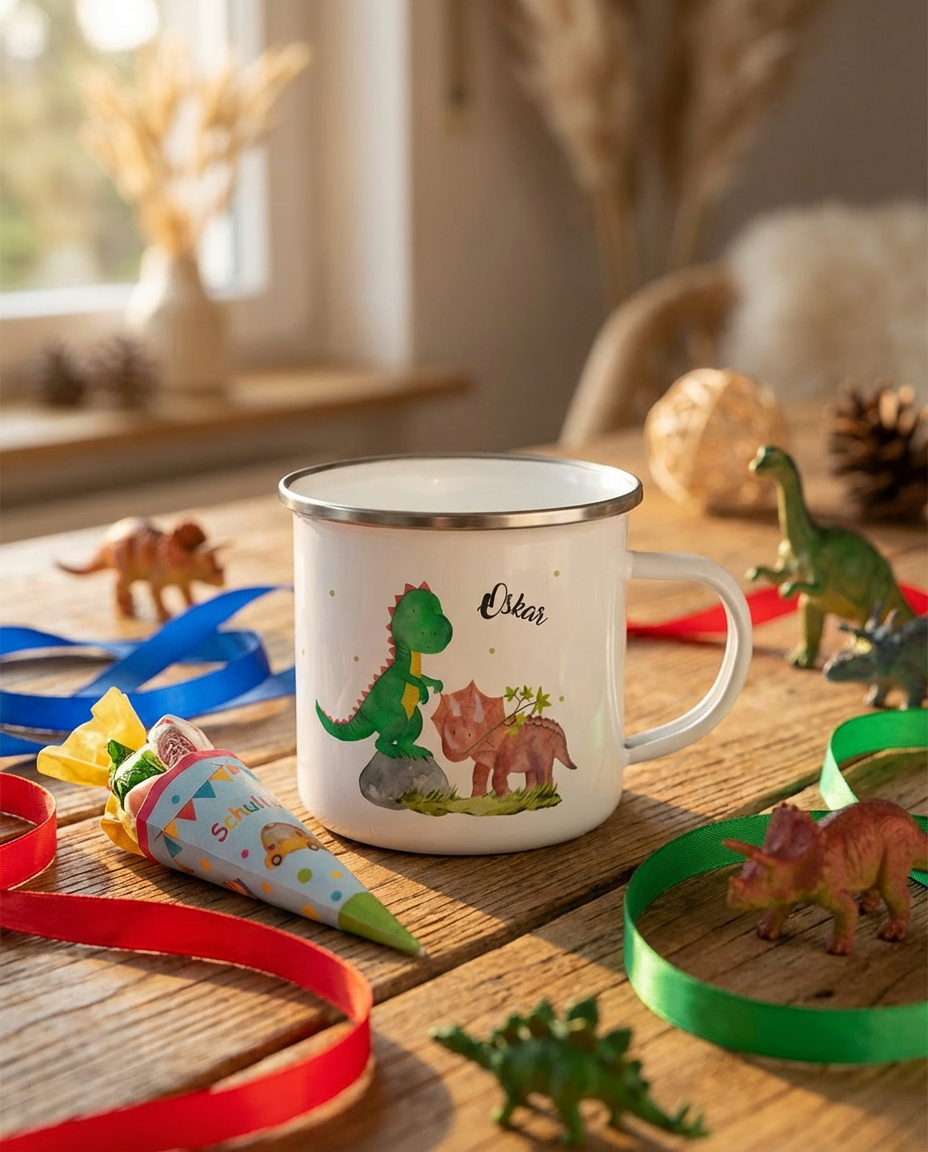 Emaille Tasse Dinosaurier personalisiert 🦕 | Wunschname Kinder
