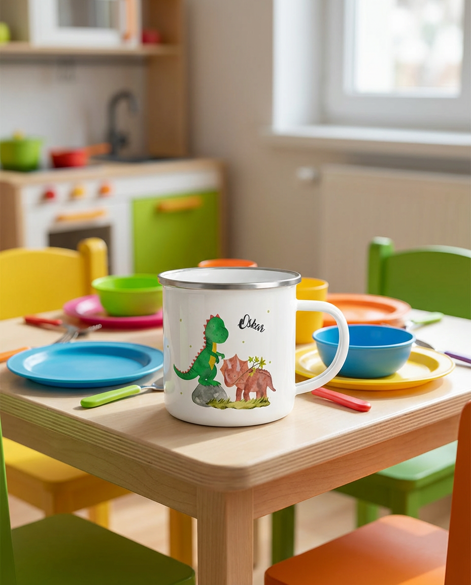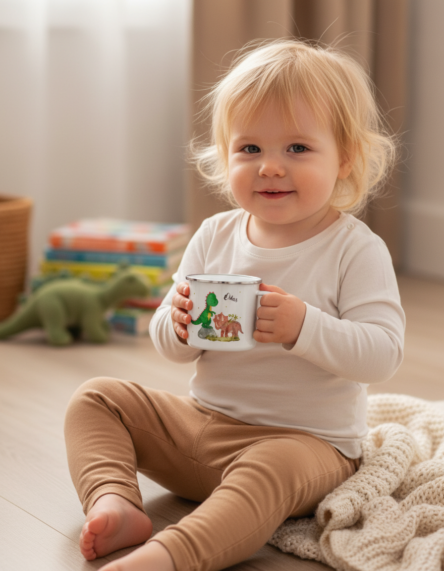 Mache deinem kleinen Abenteurer eine riesengroße Freude – seine ganz persönliche Dino-Tasse wartet schon darauf, entdeckt zu werden! 🦕✨