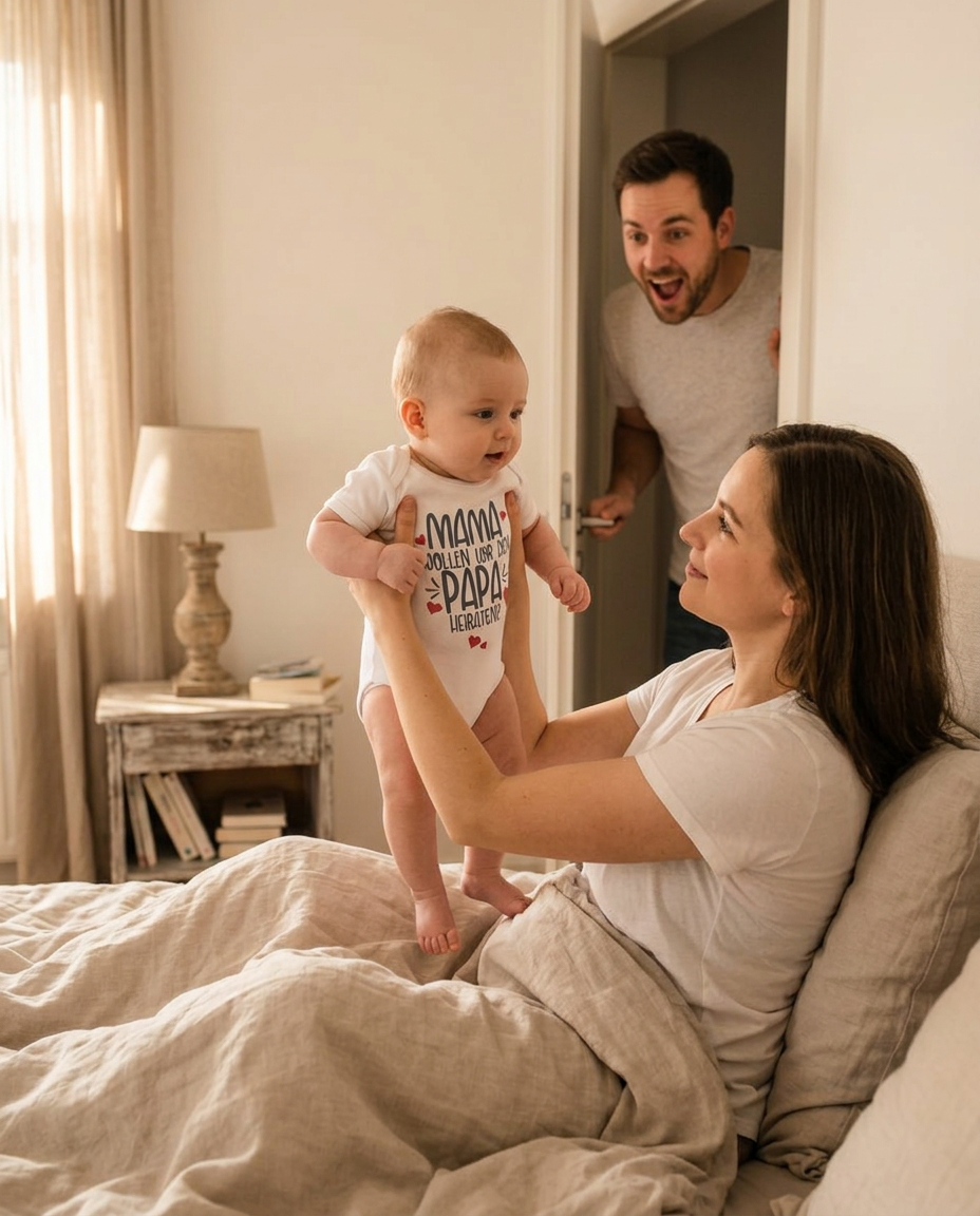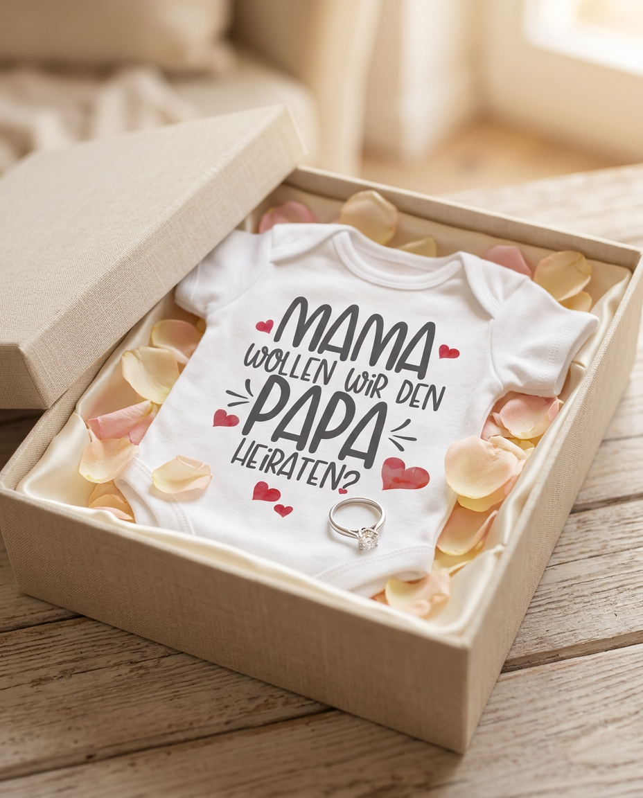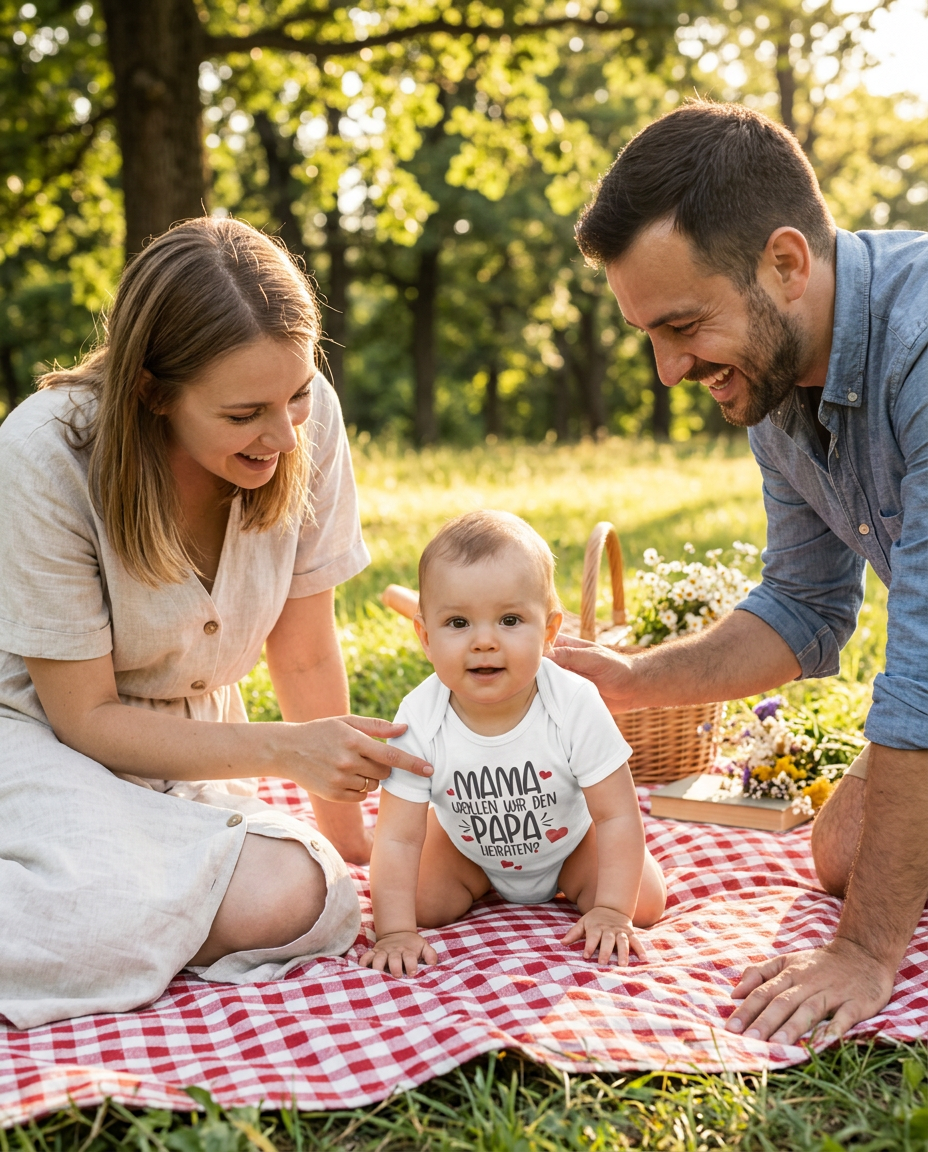 Stell dir vor, dein kleiner Schatz macht den romantischsten Antrag für dich! Mit diesem zuckersüßen Body wird jeder Moment zu einem unvergesslichen Lächeln. Der liebevolle Spruch "Mama, wollen wir den Papa heiraten?" zaubert garantiert jedem ein warmes Gefühl ins Herz.