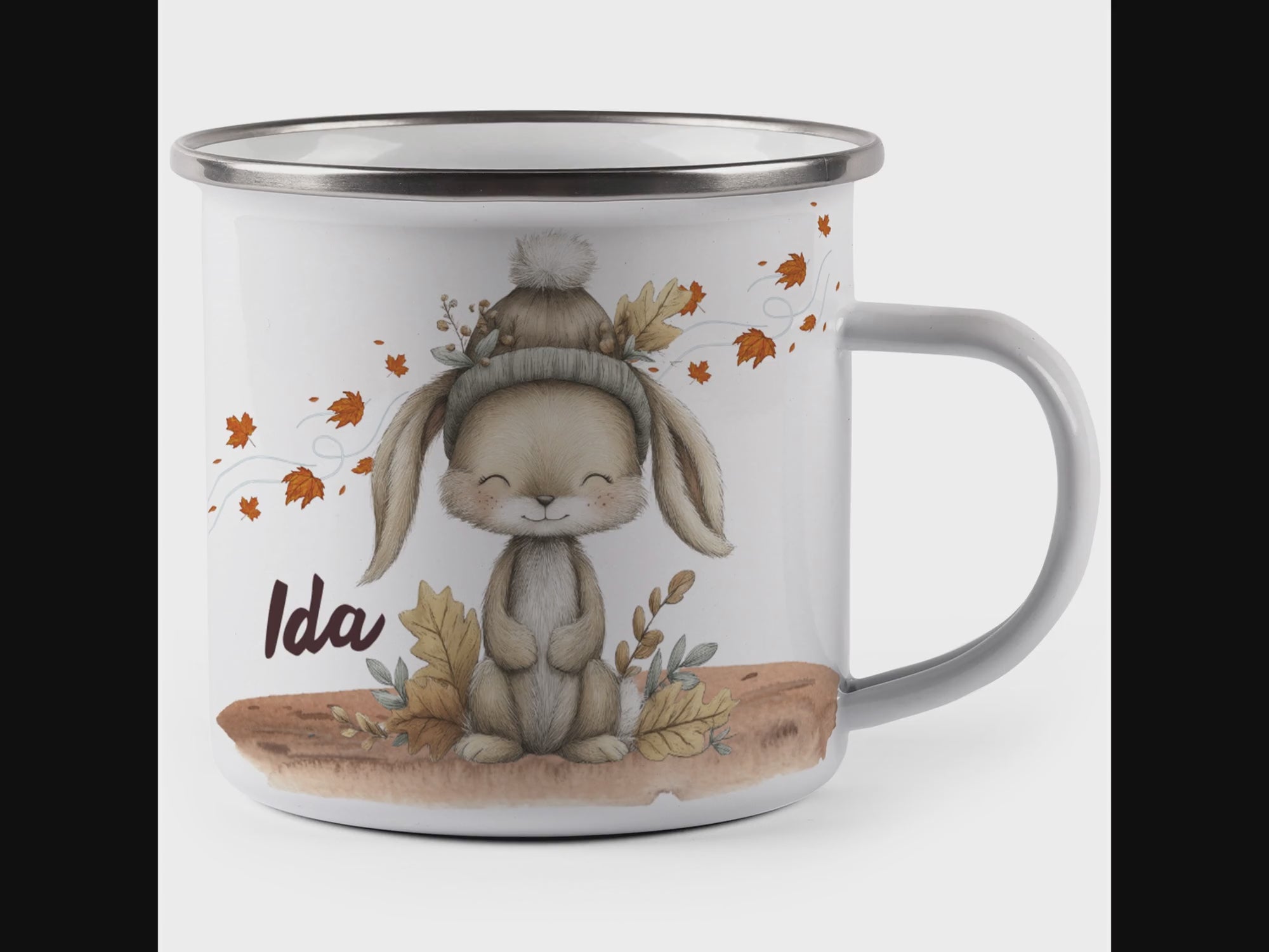 Die personalisierte Emaille Tasse mit Hase Motiv liebevolles Waldtier Design-Motiv von MIKALINO ist das perfekte Geschenk für alle, die Hasen und liebevoll illustrierte Tiermotive lieben – der süße Hase mit seiner Mütze bringt Wärme, Charme und ein Stück Gemütlichkeit auf jede Tasse.. Jede Tasse wird mit deinem Wunschnamen bedruckt und so zu einem ganz persönlichen Unikat.