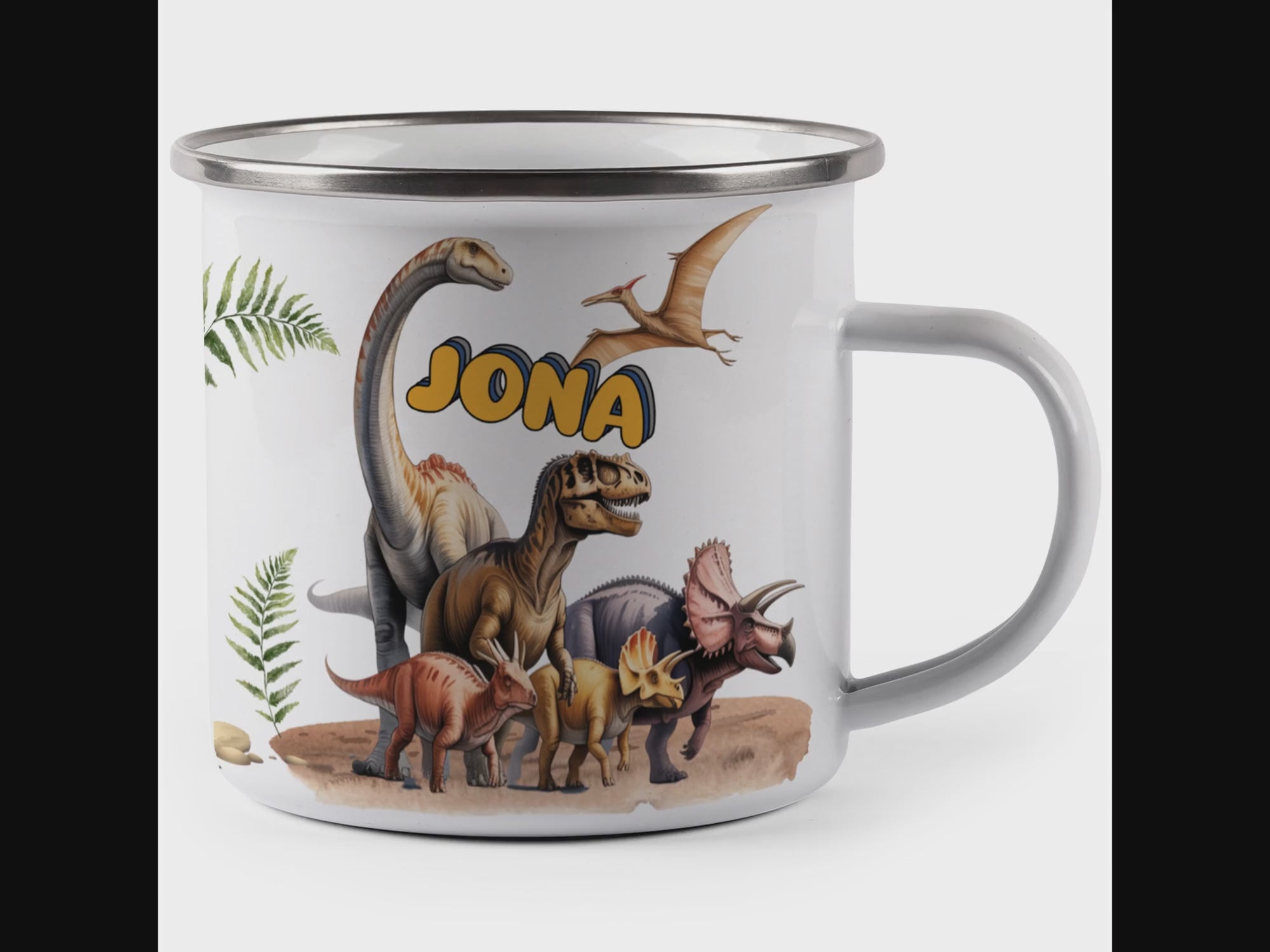 Die personalisierte Emaille Tasse mit Jurassic Freunde-Motiv von MIKALINO ist das perfekte Geschenk für als tolles Geschenk für Jungs und Mädchen, die sich für die spannende Welt der Dinosaurier begeistern. Jede Tasse wird mit deinem Wunschnamen bedruckt und so zu einem ganz persönlichen Unikat.