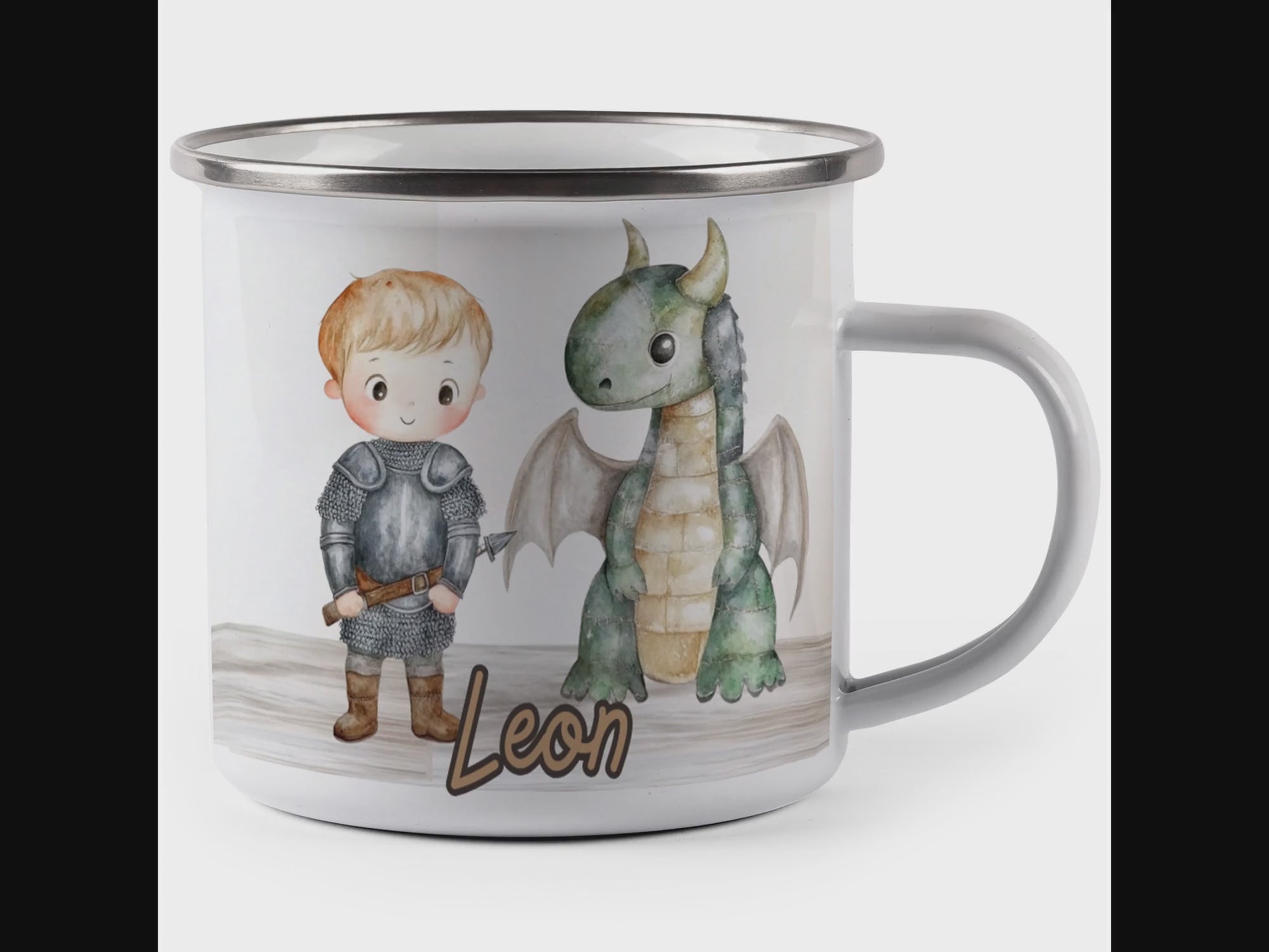 Die personalisierte Emaille Tasse mit kleiner Ritter und kleiner Drache-Motiv von MIKALINO ist das perfekte Geschenk für alle, die liebevoll illustrierte Kindermotive und fantasievolle Abenteuerwelten lieben – der kleine Ritter mit seinem Drachenfreund begeistert kleine Helden und Entdecker.. Jede Tasse wird mit deinem Wunschnamen bedruckt und so zu einem ganz persönlichen Unikat.