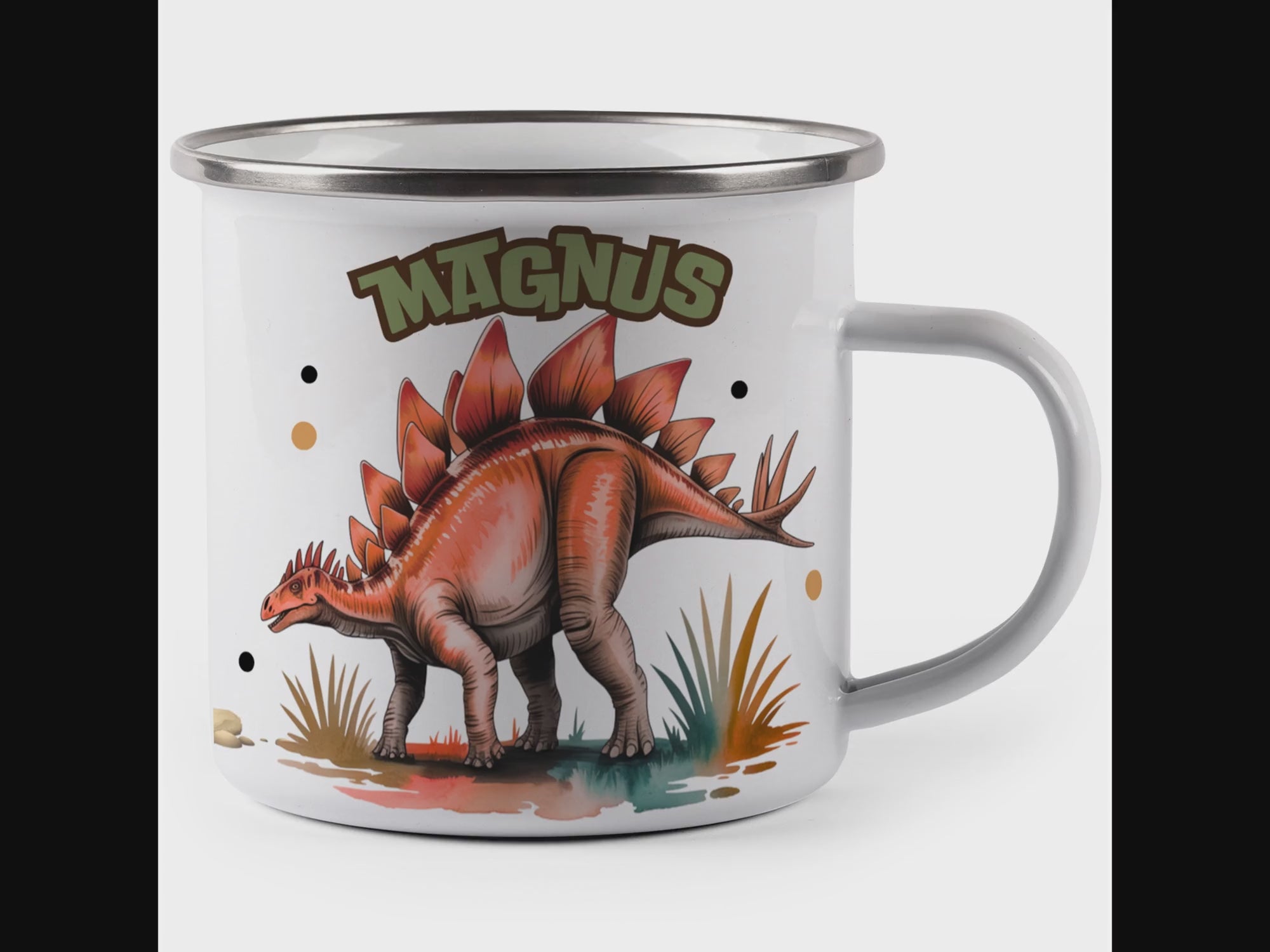 Die personalisierte Emaille Tasse mit Starker Stegosaurus-Motiv von MIKALINO ist das perfekte Geschenk für kleine Dino-Fans, die den beeindruckenden Stegosaurus mit seinen Rückenplatten lieben. Jede Tasse wird mit deinem Wunschnamen bedruckt und so zu einem ganz persönlichen Unikat.