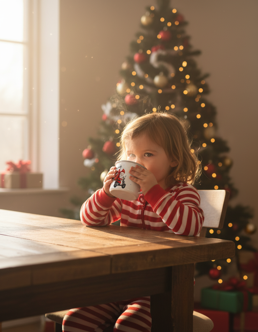 Stell dir vor, wie dein Kind strahlend seine ganz persönliche Weihnachtstasse in den Händen hält – mit seinem Namen und dem zuckersüßen Weihnachtsmann, der fröhlich auf seinem Motorroller durch die Winterlandschaft düst. Diese bezaubernde Emaille Tasse wird garantiert zum absoluten Lieblingsstück der ganzen Familie!